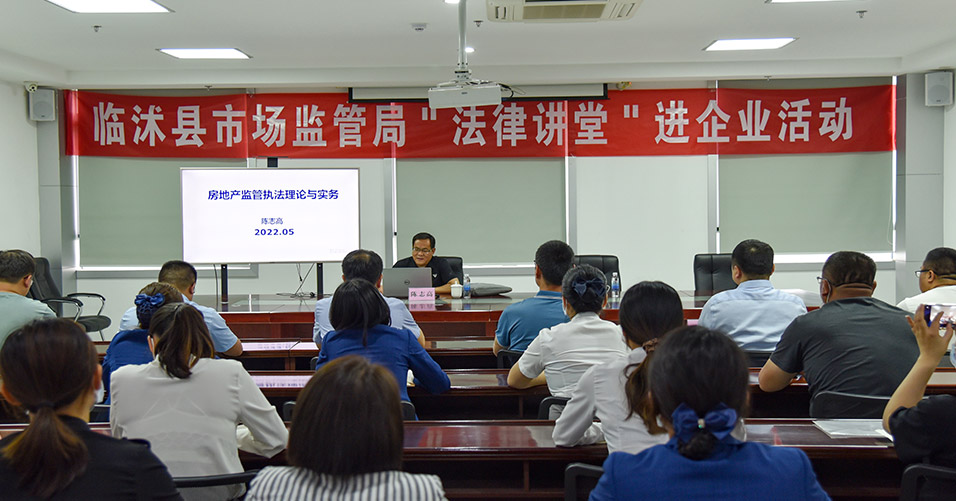 To further optimize the business environment, play a leading role of rule of law, by the high quality of the propaganda work of promoting the development of enterprise, high quality, in the afternoon of May 20, linshu market regulator to shandong weiye group to carry out the "legal lecture hall" into the enterprise activities, market supervision bureau of economic inspection section chief Stanley chan to explaining the propaganda work and the importance of the standardization of interpretation.  Zhou Xincheng of the economic inspection Department of the county Market Supervision Bureau, Huang Xifeng, secretary of the Party Committee of Shandong Weiye Group and general manager of Jinmingyu Real Estate Development Company, Pang Longchang, general manager of the group operation management Center, Zhang Junluan, general manager of the group planning center and relevant staff attended the activity.
